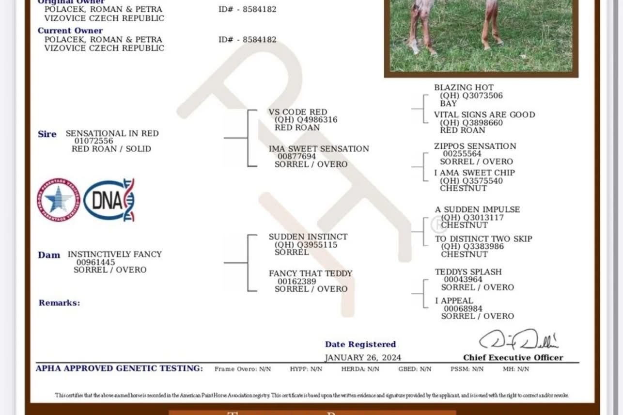 Na predaj – mladý perspektívny All around kôňMeno: Fancier Than Ever ( žrebec) Narodený: 2023Farba: red roanOtec: Sensation In RedMatka: Instinctively FancyFancier Then Ever („Porche“) je výnimočný mladý kôň s úžasnou, vyrovnanou povahou. Vhodný aj pre začiatočníka – je ochotný, rýchlo sa učí a je extrémne pohodlný na jazdenie.Je obsadnutý, zvláda základné chody a má veľký športový potenciál. Vhodný pre all-aroundové disciplíny, kde určite zaujme nielen výkonom, ale aj atraktívnou farbou a pôvodom.📍 Nachádza sa na Ranči 13 v Nemšovej.📞 Pre viac informácií kontaktujte: Linda Macáková, tel. +420 604 450 682