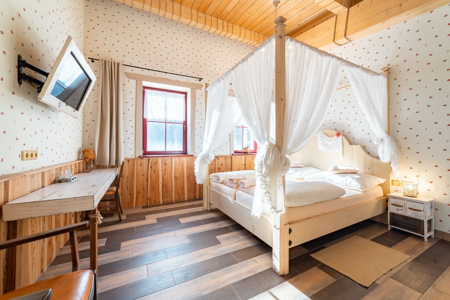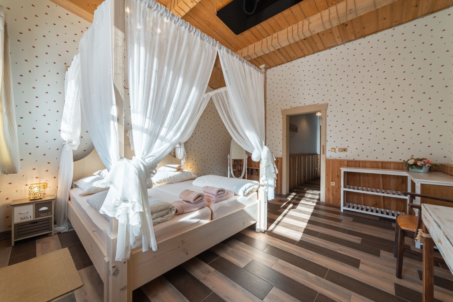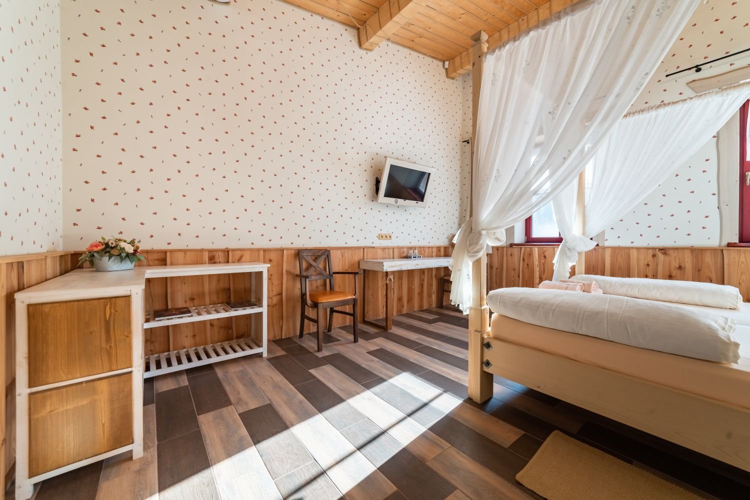 Táto dvojlôžková izba, nazývaná Room No. 23, sa nachádza na poschodí a je možné do nej pridať výsuvnú prístelku, čo poskytuje väčší komfort a flexibilitu pre našich hostí.