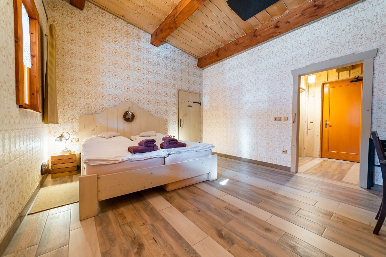 Táto dvojlôžková izba, nazývaná Room Farmer Susan, sa nachádza na poschodí a je možné do nej pridať výsuvnú prístelku, čo poskytuje väčší komfort a flexibilitu pre našich hostí.