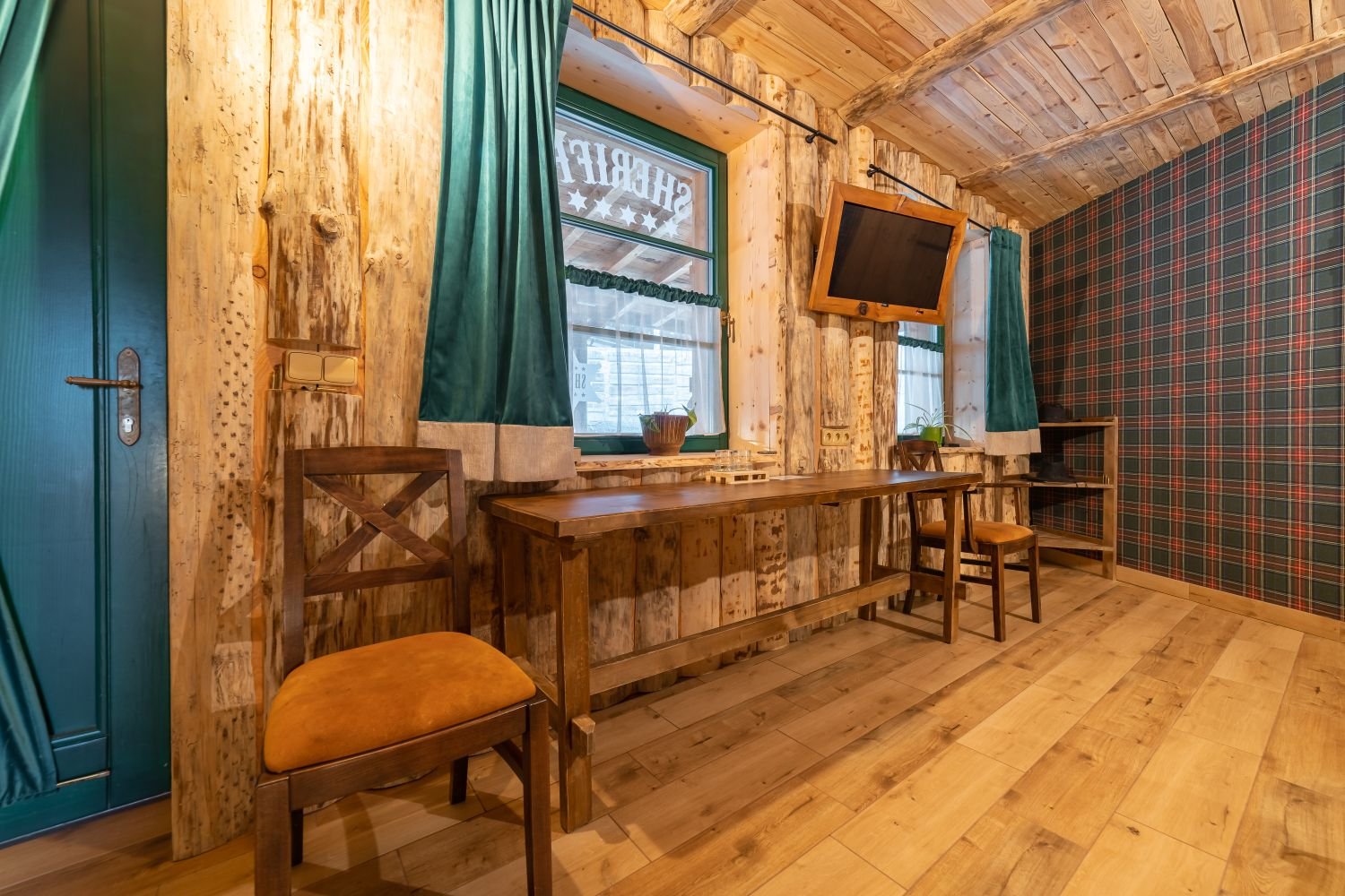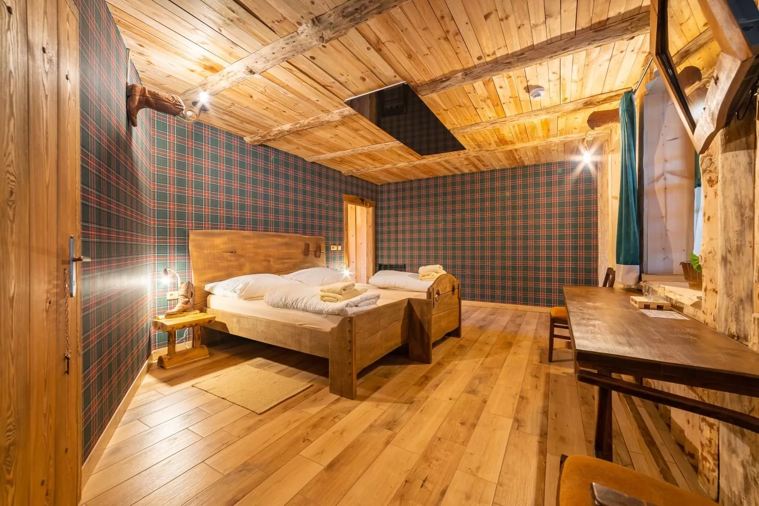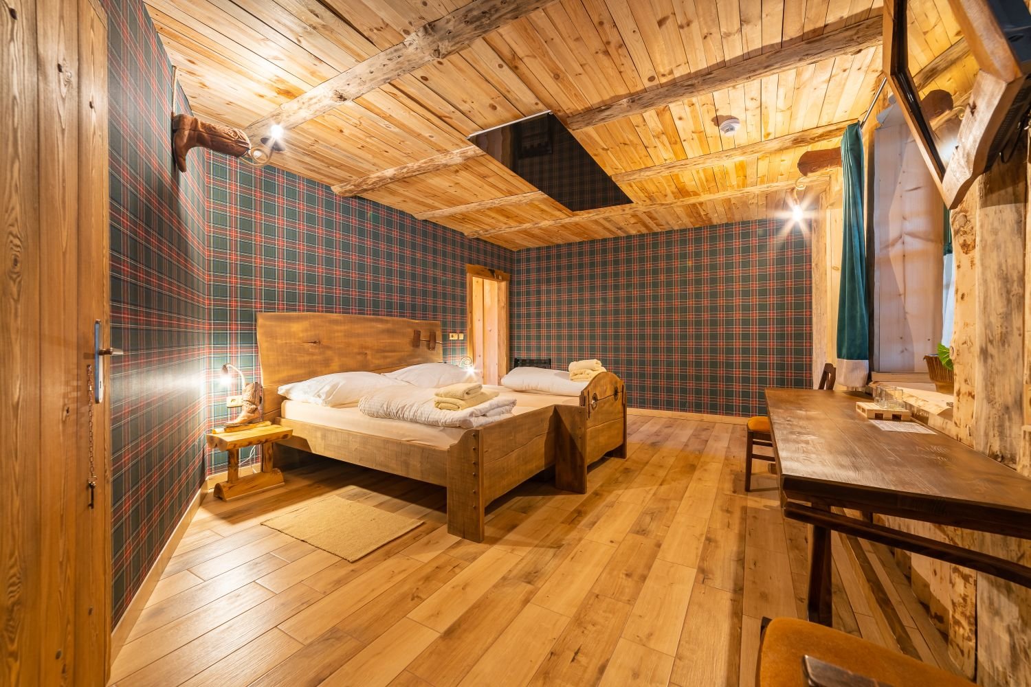 Táto dvojlôžková izba, nazývaná Room Scheriff R13, sa nachádza na prízemí a je možné do nej pridať výsuvnú prístelku, čo poskytuje väčší komfort a flexibilitu pre našich hostí.