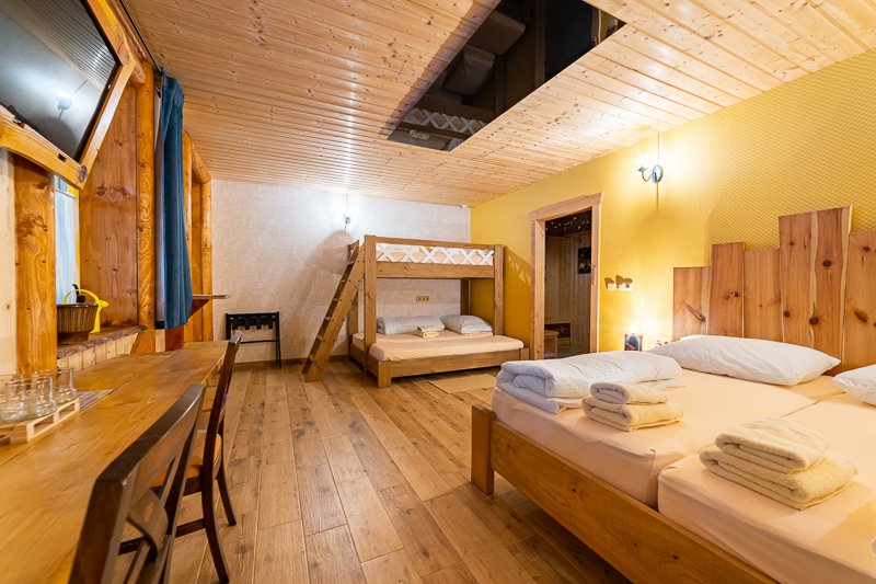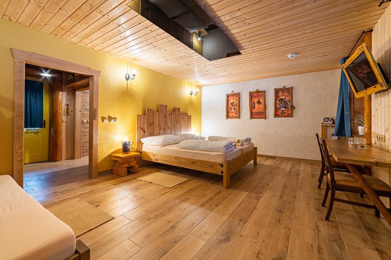 Do izby je možné pridať prístelku. Izba je plne vybavená, ponúka krásny výhľad na prírodu okolo ranča a zahŕňa satelitnú TV, Wi-Fi, sušič na vlasy, uteráky, kozmetickú sadu, pracovný stôl, stoličky a kuforníky. Pre malé deti môžeme poskytnúť aj detskú postieľku.